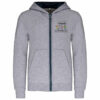 80 % gekämmte Baumwolle / 20 % Polyester. Gebürstetes Fleece. Strickbündchen an Ärmeln und Saum. Kontrastfarben gefütterte Kapuze. Kontrastfarbener Reißverschluss. Durchlass für Kopfhörerkabel in der Kängurutasche und am Halsausschnitt. Zertifizierte STANDARD 100 by OEKO-TEX®N° CQ1007/7, IFTH.